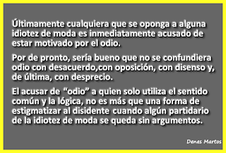 Si alguien lo acusa de odio a Usted, tenga la plena seguridad de que, en nueve de cada diez casos, el que odia es el acusador. Y la acusación es difícil de refutar porque una tesis negativa no puede ser demostrada. Es fácil decirle a alguien que odia mientras que es casi imposible para el acusado demostrar que no odia. El éxito de las acusaciones de homofobia, antisemitismo, insensibilidad social, falta de empatía y otras imputaciones frecuentes se basa justamente en este hecho: el acusado no tiene mucho margen para defenderse; cualquier argumento que mencione en su defensa puede ser fácilmente minimizado o ridiculizado por su acusador.